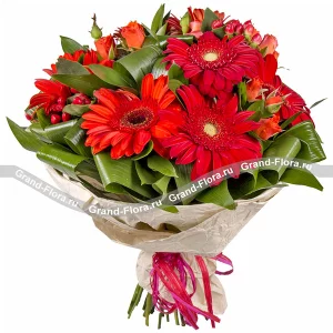 Осеннее солнце - букет из оранжевых гербер